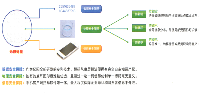制假造假“零”存在。基于博碼在數據層、物理層和信息層的高安全性,博碼本身不易被復制、破壞和轉移。博碼云平臺可全面保障博碼的附著印刷從系統數據庫直接推送和管控,無人為接觸可能,從源頭斬斷了造假分子的造假行為。